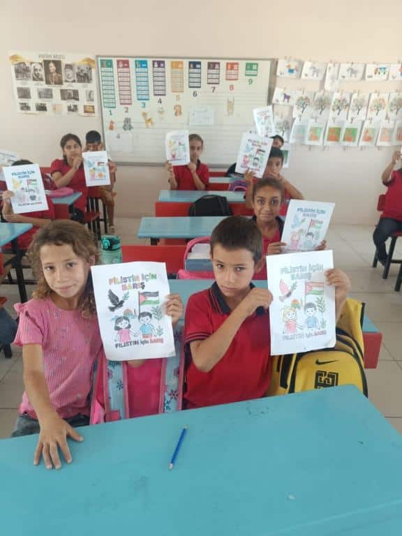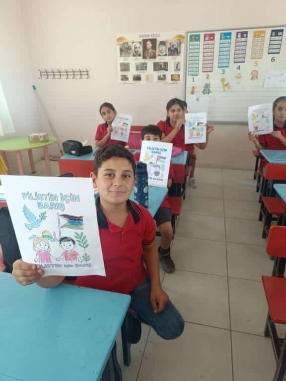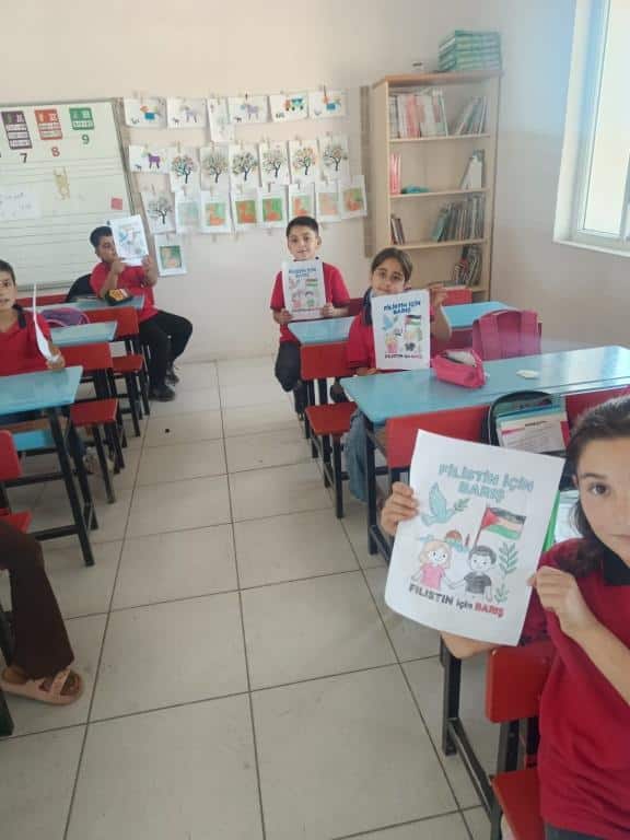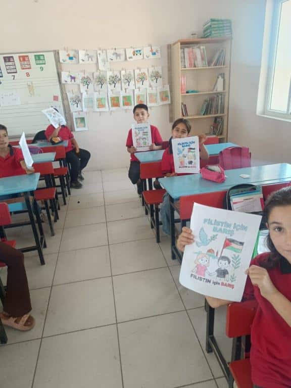 Öğrencilerimiz, Filistin halkına destek amacıyla anlamlı bir etkinliğe imza attı. Okulda düzenlenen etkinlikte Filistin’de yaşanan insan hakları ihlalleri ve sivillere yönelik saldırılar kınandı.